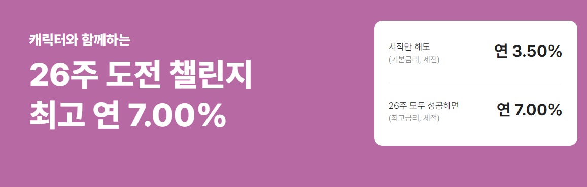 26주 도전 챌린지를 성공하면 연 7% 이자를 받을 수 있고 1인당 30 계좌를 만들 수 있어서